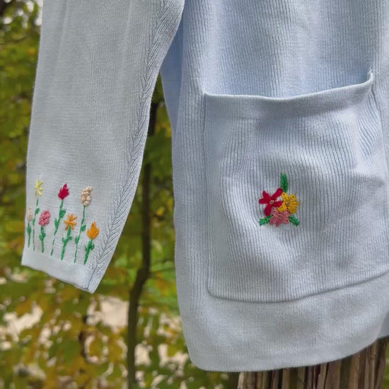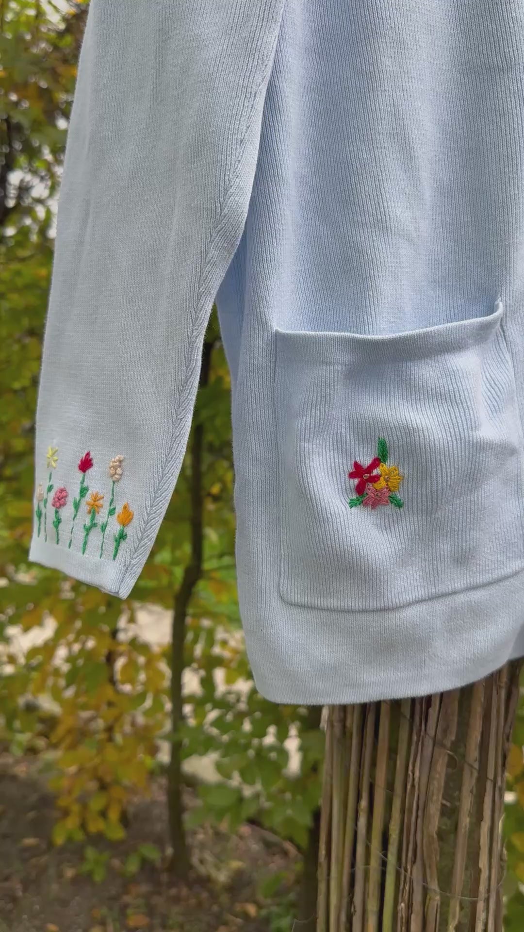 Der Babyblue Cardigan ist ein handbestickter Pulli, der deinen Winterkleiderschrank mit verspieltem Charme füllt. Die liebevollen Stickereien machen ihn zum perfekten Begleiter für kalte Tage, während das kuschelige Material für wohlige Wärme sorgt. Ideal, um den Winter bunt und fröhlich zu färben – bereit für viele Abenteuer und Kuschelmomente!