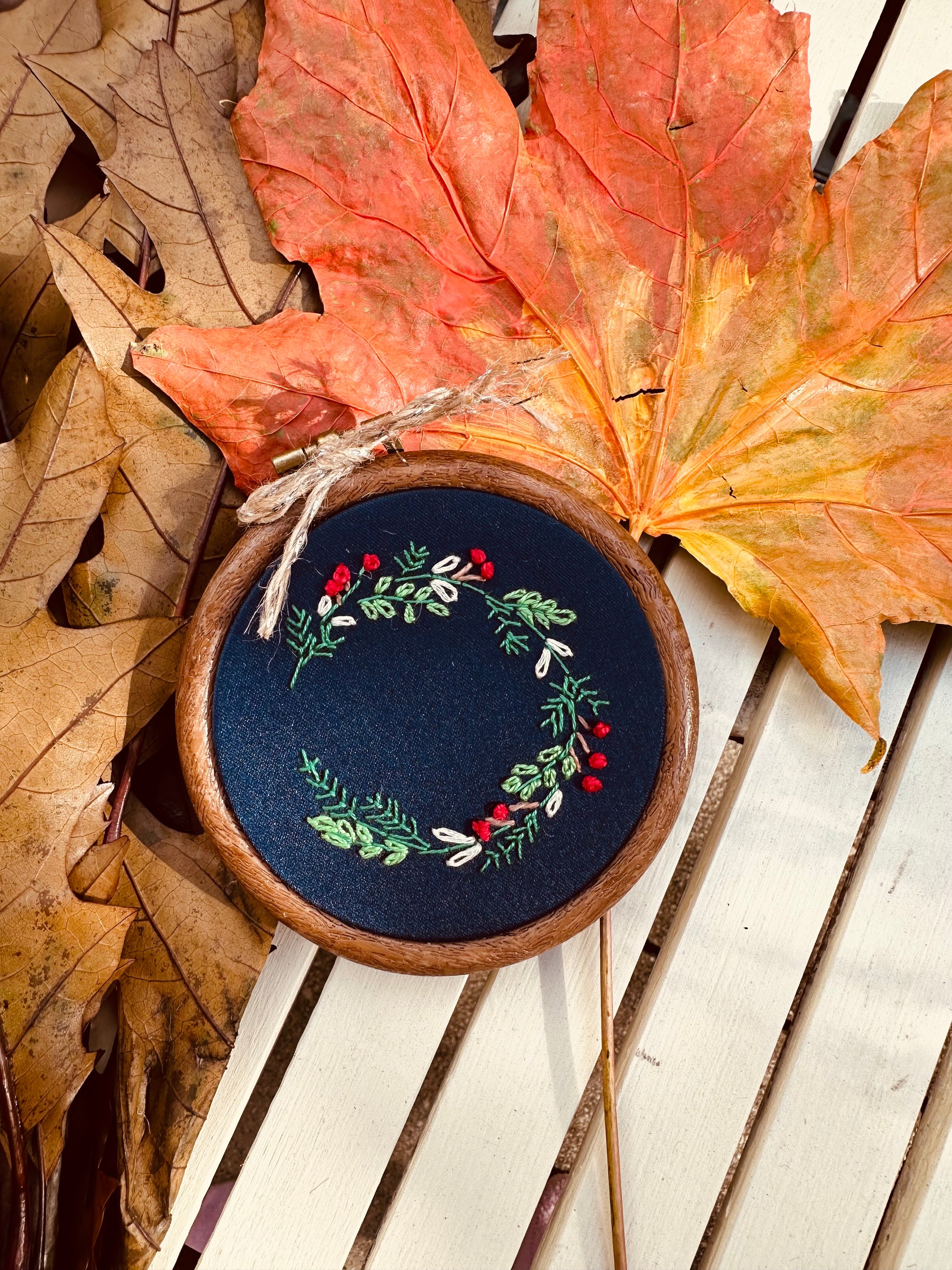 Dieser handbestickte Rahmen in Form eines kleinen Kranzes bringt charmante Herbst- und Wintermotive zu dir nach Hause. Mit viel Liebe zum Detail gearbeitet, verleiht er jeder Ecke eine warme, weihnachtliche Stimmung. Perfekt als spielerische Deko, die kleine Glücksmomente schafft und deine Saison verzuckert!