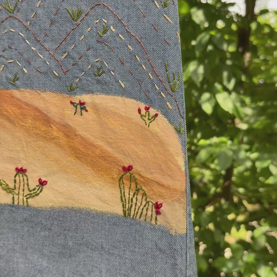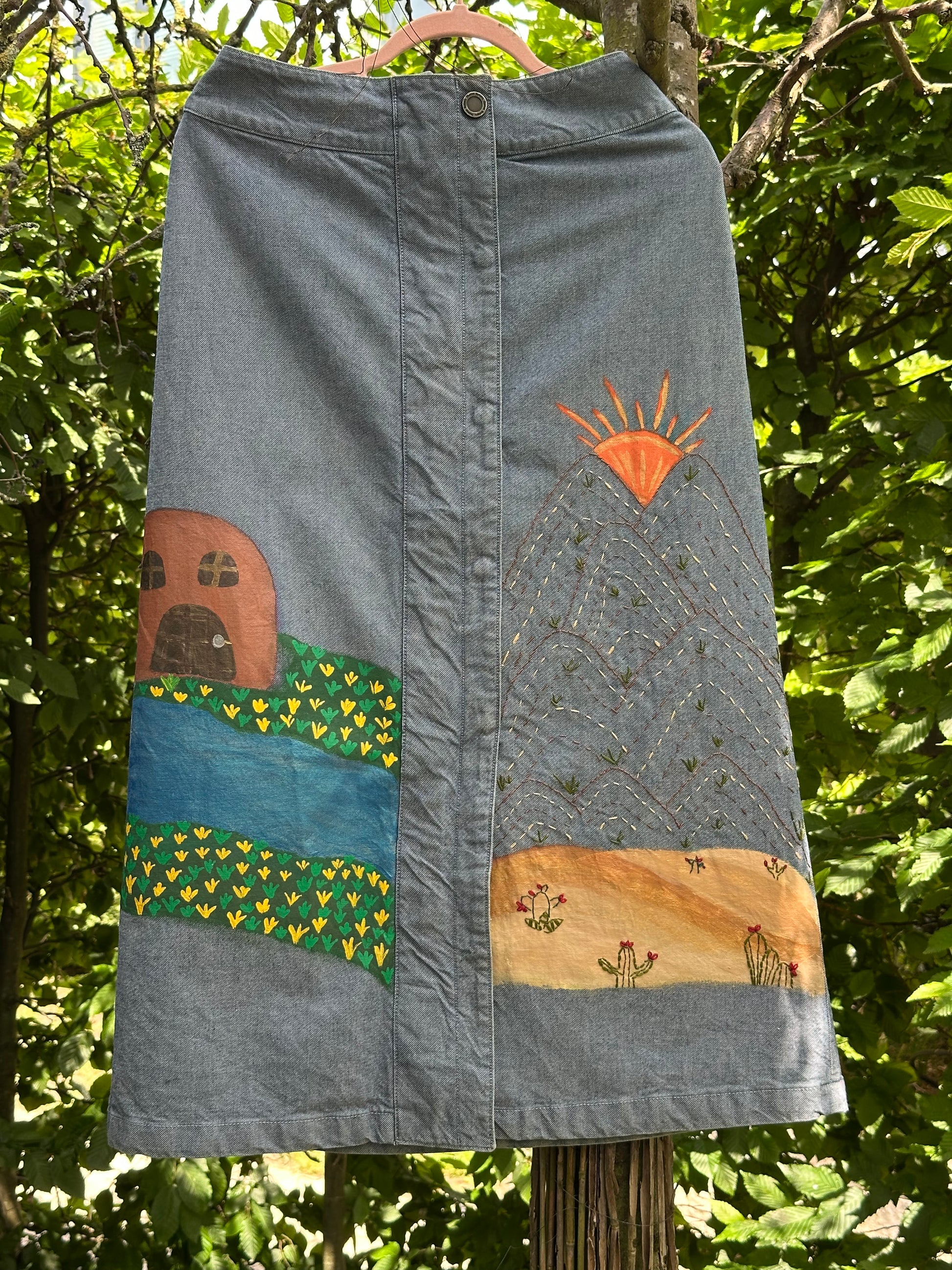 Dieser Jeans-rock ist mehr als nur ein Kleidungsstück – er ist ein handbemaltes und handbesticktes Unikat mit dem besonderen Wadi & Sahara Design. Jedes Stück trägt ein eigenes, einzigartiges Muster, das deinen Look mit verspieltem Charme und kreativer Energie aufpeppt. Perfekt für alle, die ihren Style mit einem persönlichen Kunstwerk unterstreichen möchten!