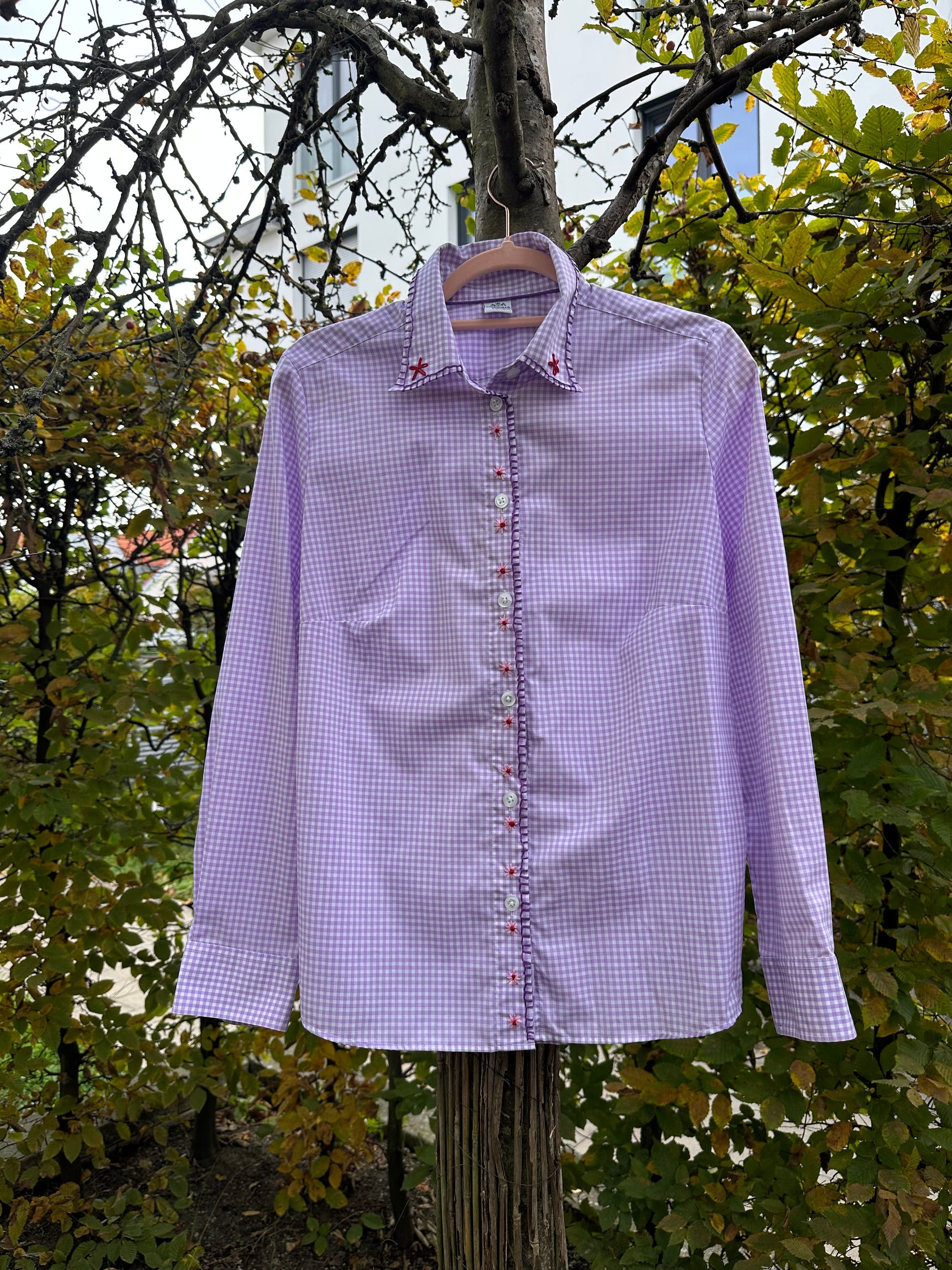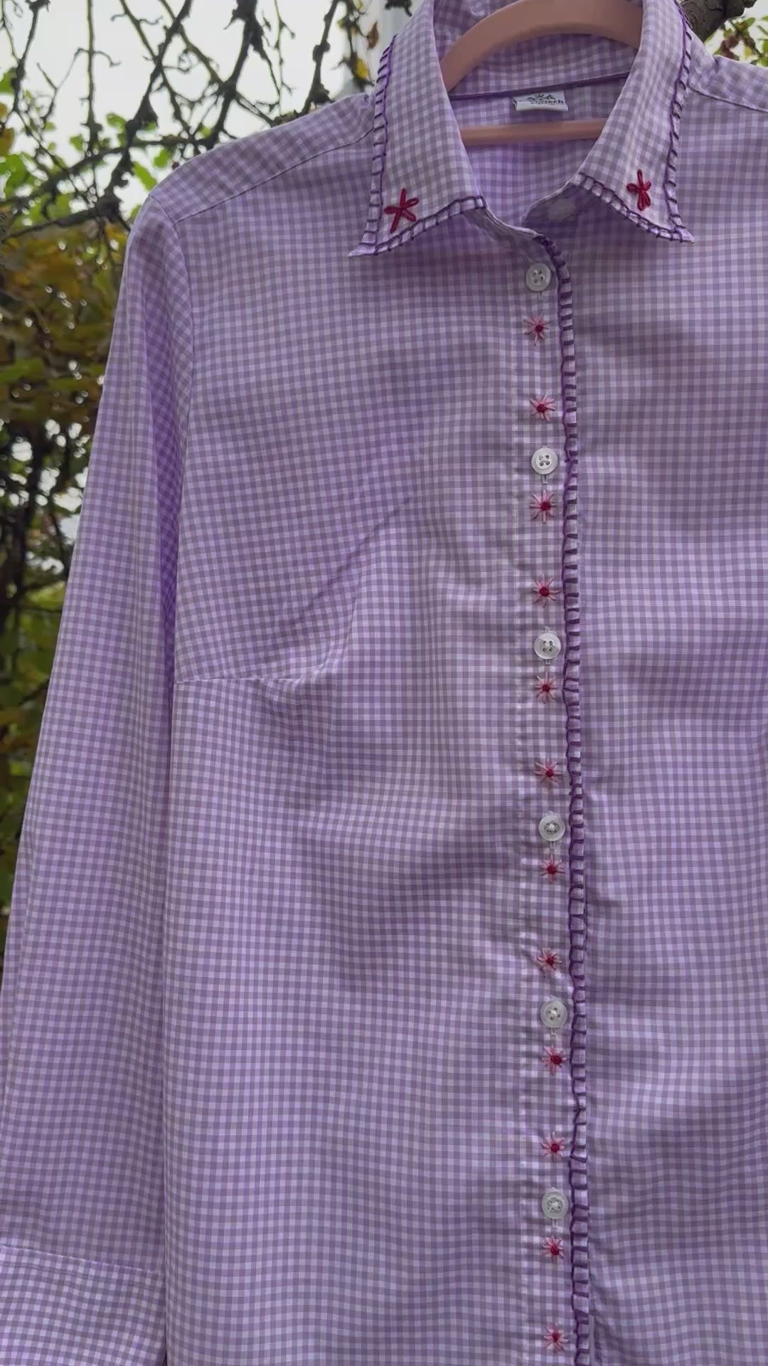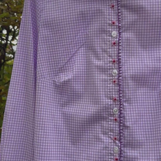 Dieses lila Hemd verzaubert mit seinem niedlichen, handbestickten Blumenmuster. Es bringt Farbe und fröhlichen Charme in deinen Alltag und sorgt für einen verspielten Look, der alle Blicke auf sich zieht. Perfekt für alle, die Stil mit einem Hauch von Handwerkskunst lieben!